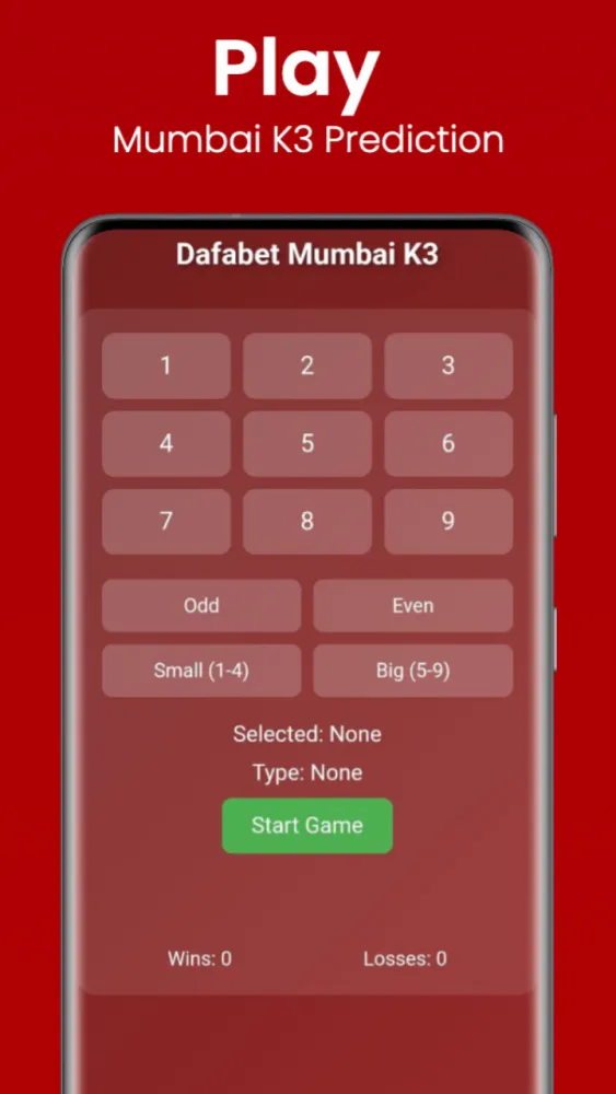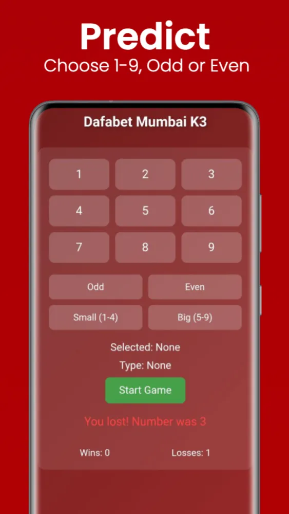 - Select your lucky number or prediction type (Odd/Even, Small/Big).