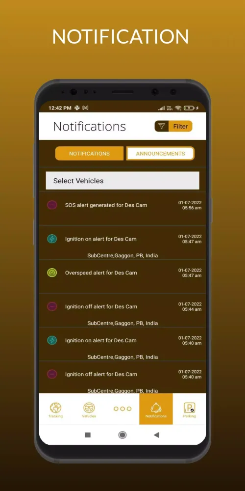 Real-Time Notifications: Stay updated with instant alerts for key events such as ignition status, geofence breaches, over-speeding, and power cut-offs. All this information is conveniently managed within a single, user-friendly app.
