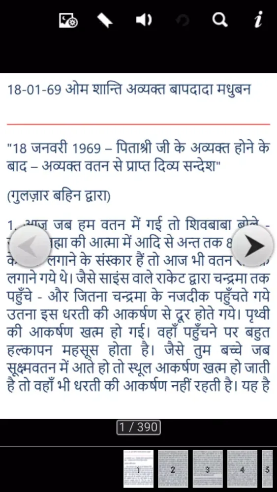 Another valuable feature is the auto-bookmark functionality. When users reopen the app, it automatically resumes from the last reading page, ensuring continuity in their spiritual exploration. This thoughtful addition eliminates the need to manually bookmark pages, saving time and effort while maintaining focus on the core content. Whether you are a devoted practitioner or a curious learner, Avyakt Vaani 1983 provides an enriched digital platform that combines traditional wisdom with modern technology. Its comprehensive set of tools makes it an indispensable companion for anyone seeking deeper insights into the teachings of the Avyakt Murli series.