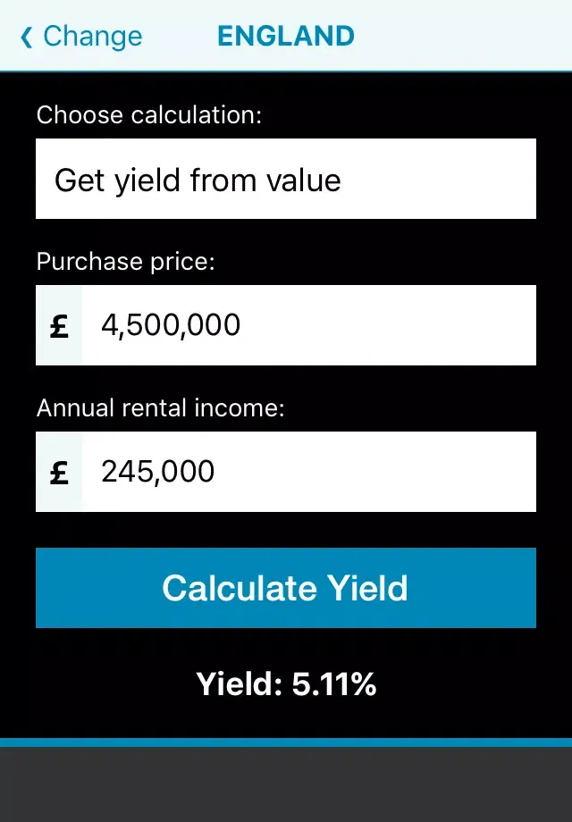 One of the key features of Yield Calc is its ability to factor in the Land and Buildings Transaction Tax (LBTT), which applies to commercial properties in England, Scotland, Wales, and Northern Ireland. Historically, LBTT was calculated using a straightforward formula, allowing anyone with a calculator to perform the computation. However, recent regulatory changes now require LBTT to be computed based on a progressive rate structure. This shift necessitates a more intricate calculation process, which Yield Calc adeptly handles with precision. The app automatically deducts the appropriate LBTT amount along with other essential fees, ensuring that users receive a comprehensive and accurate yield calculation expressed as a percentage.