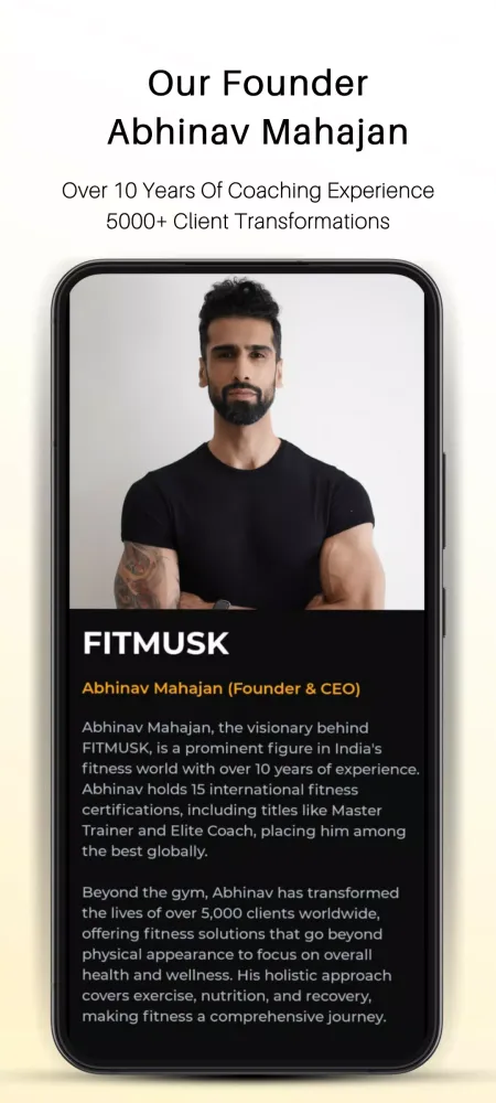 But FITMUSK doesn’t stop there. Join a vibrant community where you can share your progress, participate in challenges, and even win exciting rewards. The app’s expert coaching feature allows you to learn from top trainers like Abhinav Mahajan, who bring years of experience and internationally recognized certifications to the table. These professionals guide you through scientifically backed strategies to optimize your performance and avoid injury.