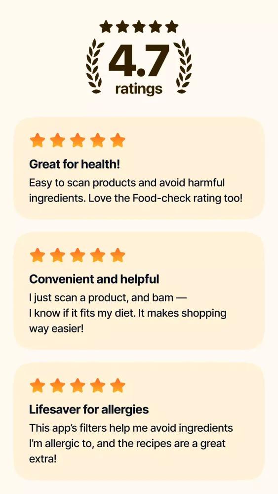 Food Check: AI Product Scanner is your ultimate companion for making informed food choices and leading a healthier lifestyle. Whether you're looking to embrace a vegan diet, manage allergies, or simply track the nutritional value of what you consume, this app has got you covered. 🌱✨