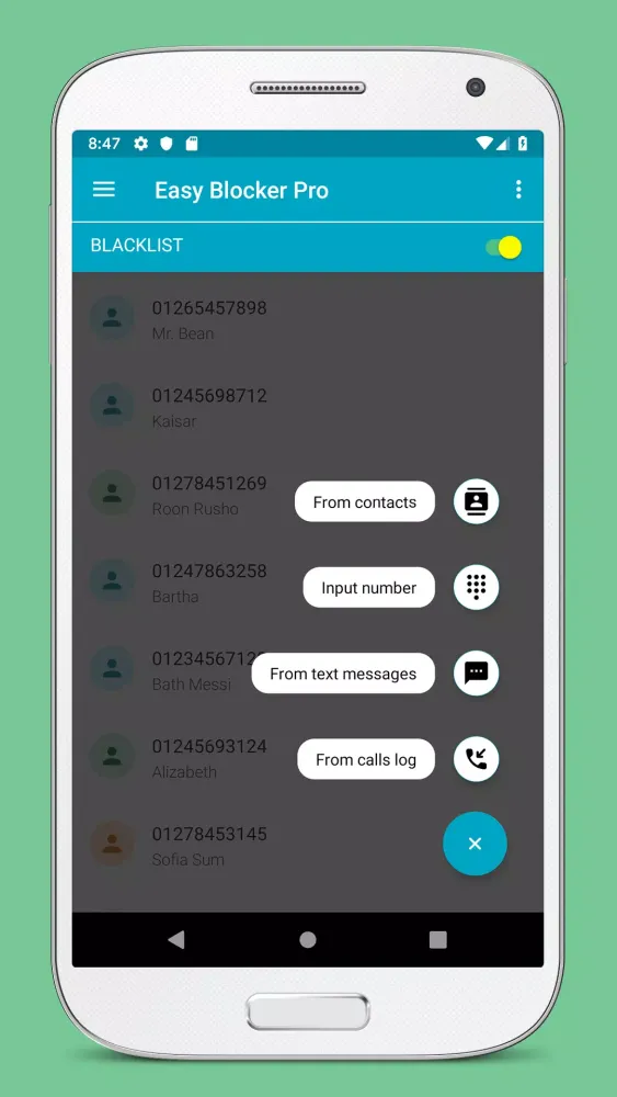 Effortlessly Manage Disturbing Calls: Say goodbye to unwanted and intrusive calls. With Blacklist - Call Blocker Pro, you have the freedom to block specific individuals or groups instantly, safeguarding your peace and privacy. The application operates silently, eliminating the need for any visual interruptions, thus allowing you to maintain focus on your daily tasks without distraction.