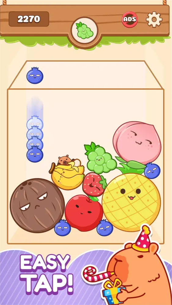 Tap to Drop: Simply tap the screen to guide the cute capybaras as they drop juicy fruit.