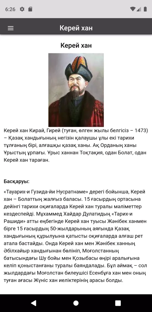 In addition to its educational value, "Қazақ Khаndаry" fosters a sense of pride and cultural awareness among users. By highlighting the accomplishments of the Kazakh khans, the app aims to celebrate the nation's heritage and inspire future generations. It also encourages cross-cultural exchanges by providing information in multiple languages, making it accessible to a global audience. Overall, this application is more than just a repository of historical facts; it is a dynamic platform that brings history to life and connects people with their shared past.