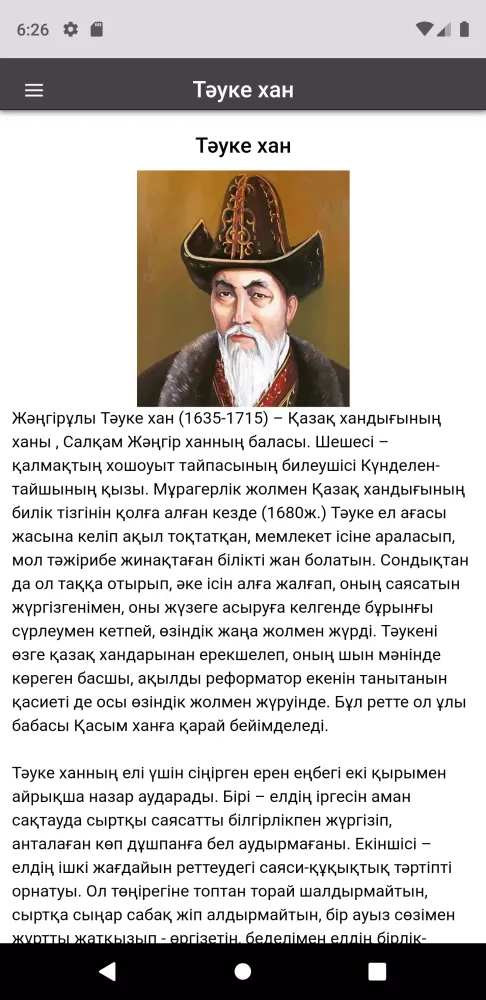 One of the primary objectives of "Қazақ Khаndаry" is to preserve and present historical data in an engaging and accessible manner. The application offers a curated collection of articles, images, and multimedia content that paints a vivid picture of the khans' era. From detailed biographies of influential leaders to accounts of significant events, the app ensures that users receive accurate and well-researched information. Additionally, it provides contextual insights into the socio-political dynamics of the time, helping users understand the broader historical context in which these khans operated.