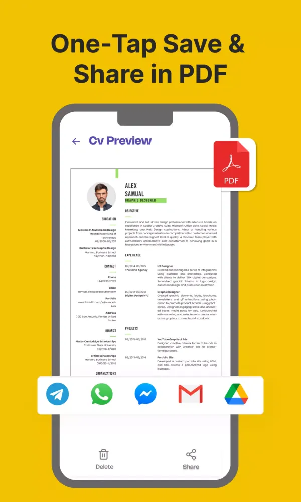 - Export your resume or CV in PDF format for easy sharing with employers and recruiters. Ensure your resume looks professional and consistent across all platforms.