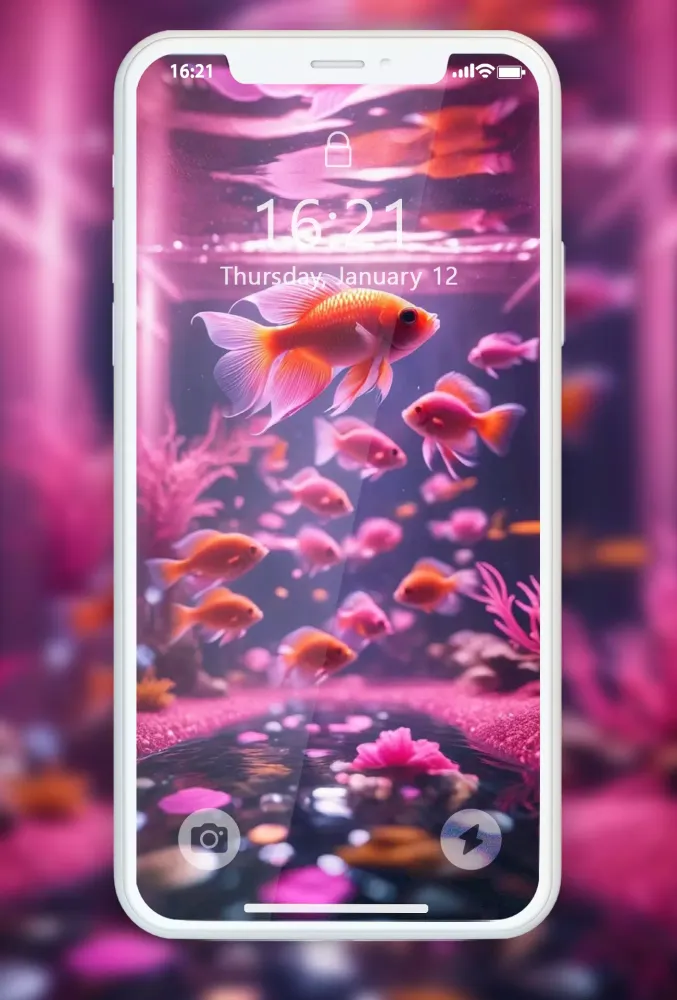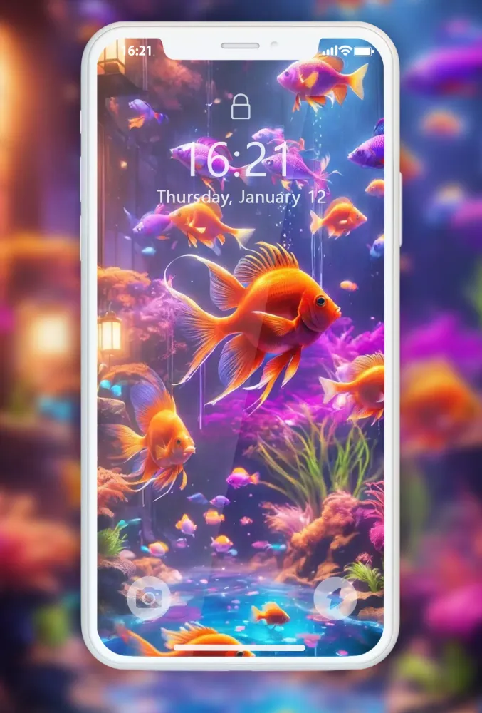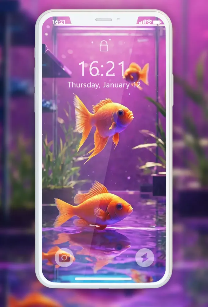 - Ikan Betta Dinamis Berbasis 3D: Saksikan gerakan nyata dari ikan betta dalam 3D yang menakjubkan, menciptakan pengalaman realistis dan menarik saat mereka secara anggun bergerak di layar perangkat Anda.