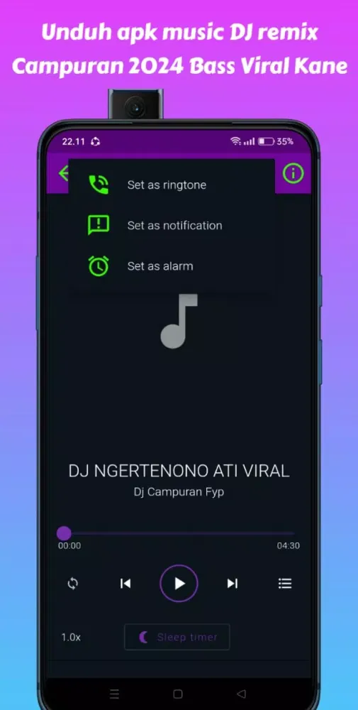 Player Lagu Lengkap: Player bawaan dilengkapi fitur canggih, memungkinkan Anda mengontrol pemutaran, menyesuaikan volume, dan menjelajahi berbagai playlist dengan mudah.