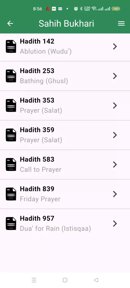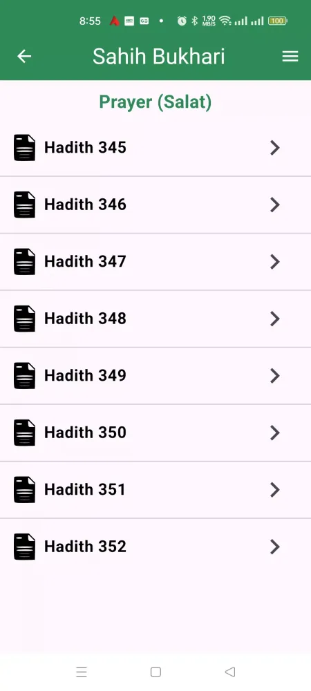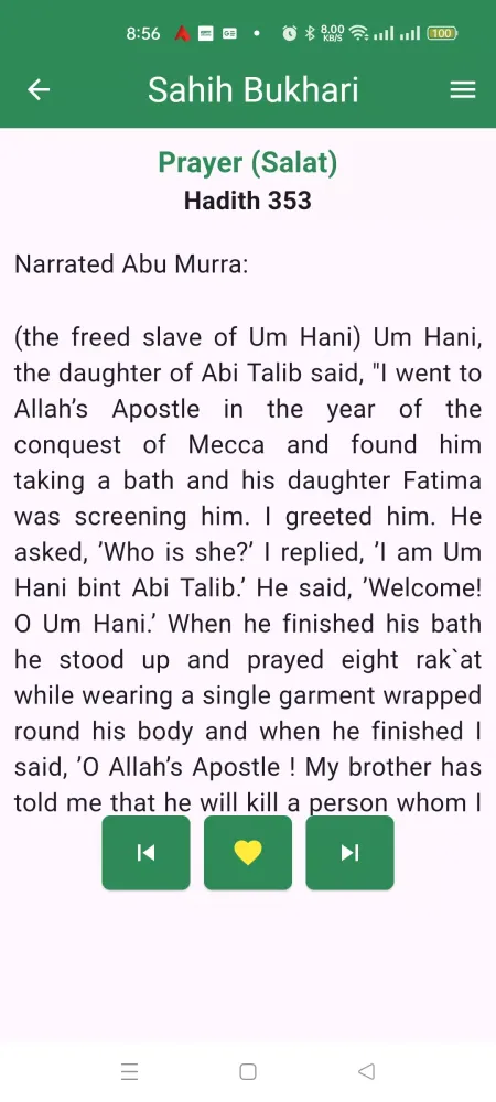 - Lompat ke Hadits Berikutnya dan Sebelumnya: Navigasi melalui Hadits secara mudah dengan gesekan sederhana.