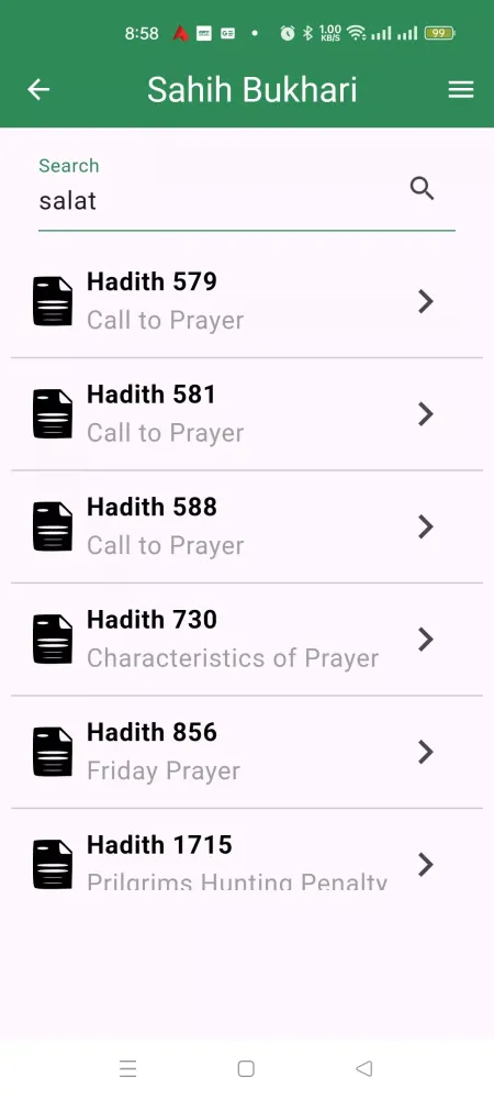 - Fitur Pencarian Hadits: Cepat temukan Hadits tertentu menggunakan fungsi pencarian yang kuat.