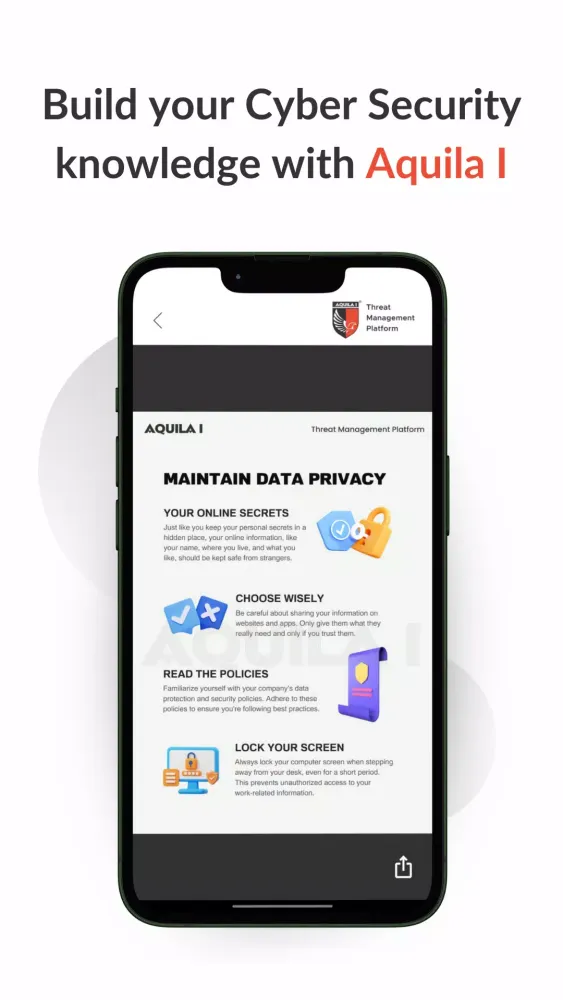 Salah satu fitur unggulan Aquila I adalah penekanan pada praktisitas. Platform ini tidak hanya memberikan kuliah—tetapi memberikan tips dan strategi yang bisa langsung diterapkan untuk meningkatkan keamanan online Anda. Misalnya, Anda akan belajar cara mengenali upaya phishing, menghindari serangan ransomware, dan melindungi perangkat mobile dari scam smishing dan vishing. Pelajaran-pelajaran ini disajikan melalui infografis yang menarik secara visual, yang membawa skenario keamanan siber ke hidup, membantu Anda memahami implikasi nyata ancaman siber.