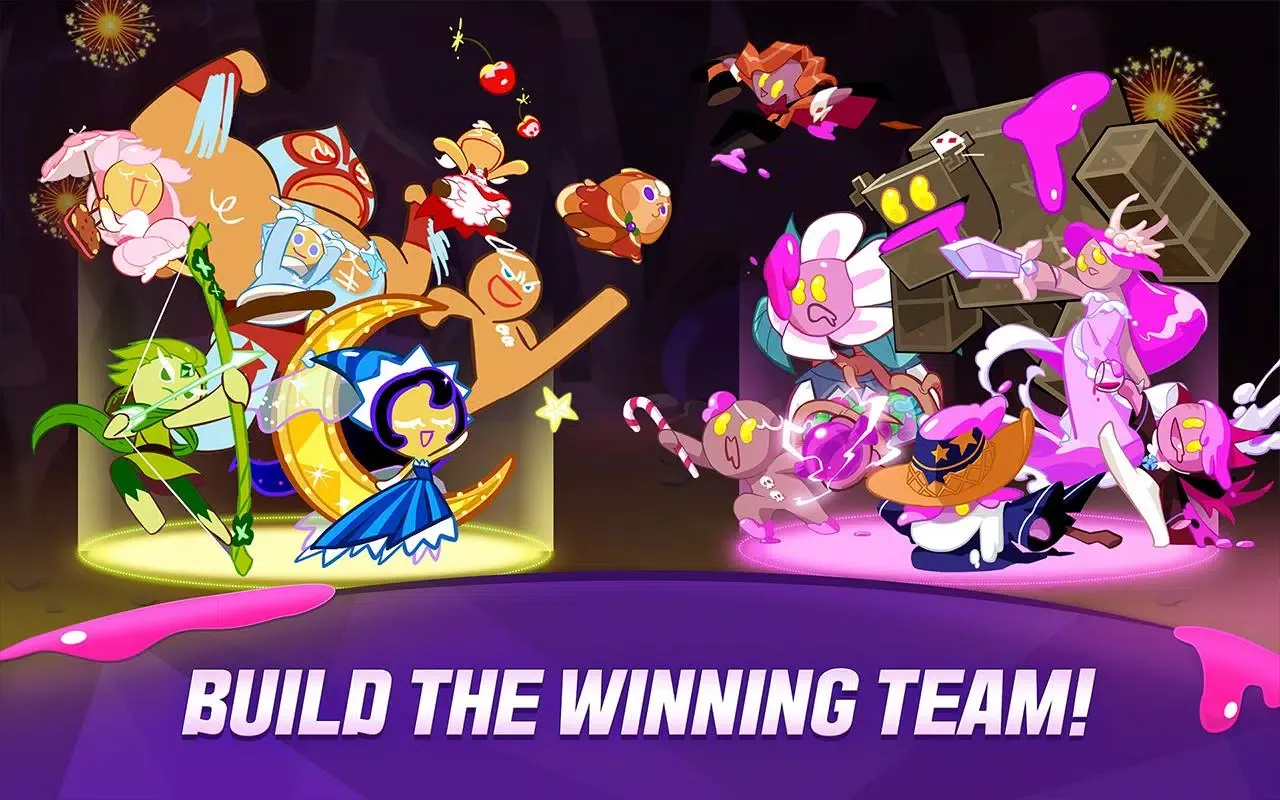 Ikuti Pertempuran: Di Cookie Perang, kamu berada di tengah-tengah perang intens terhadap invasi jeli. Gandeng Kekuatan Kue - setiap satu memiliki kemampuan dan kepribadian unik - dan buat tim terkuat untuk bertahan melawan gelombangnya. Naik level pasukanmu, kumpulkan Cincin dan Donut untuk memperkuat pasukanmu, dan perbaiki kemampuan bertarung mereka.