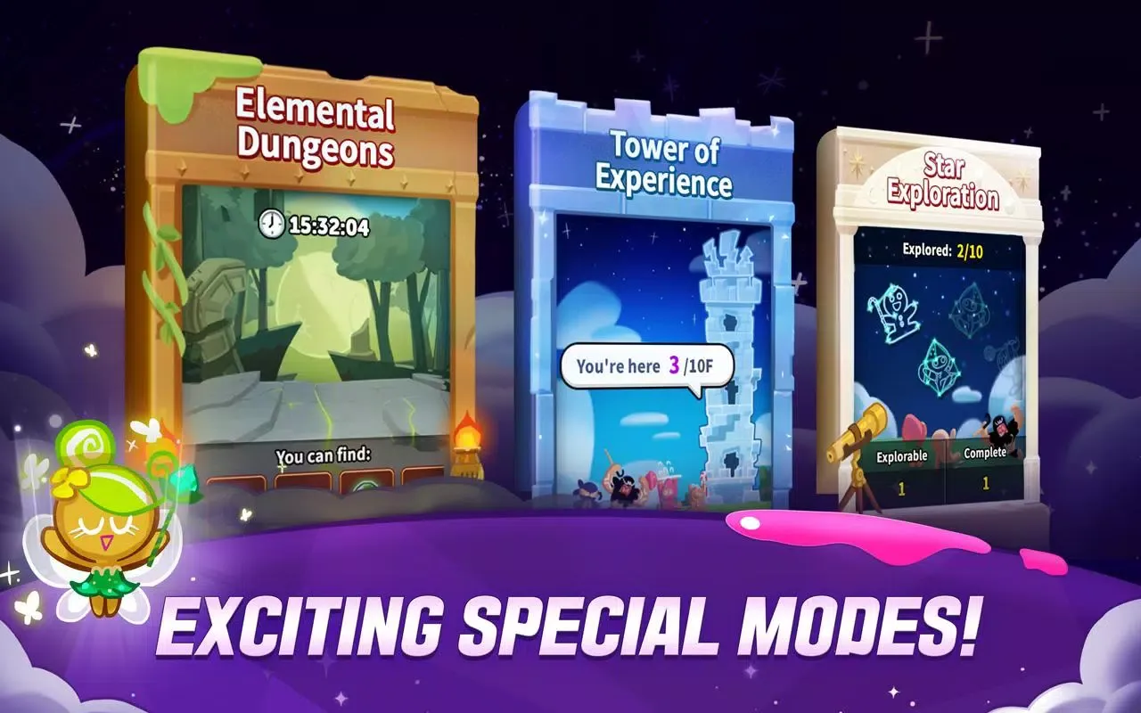 Modus Spesial untuk Hadiah: Tes keterampilanmu dalam Dungeon Elemental, Tower of Experience, dan Exploration Star. Setiap modus menawarkan tantangan yang unik dan hadiah yang banyak bagi mereka yang berani menjelajah.