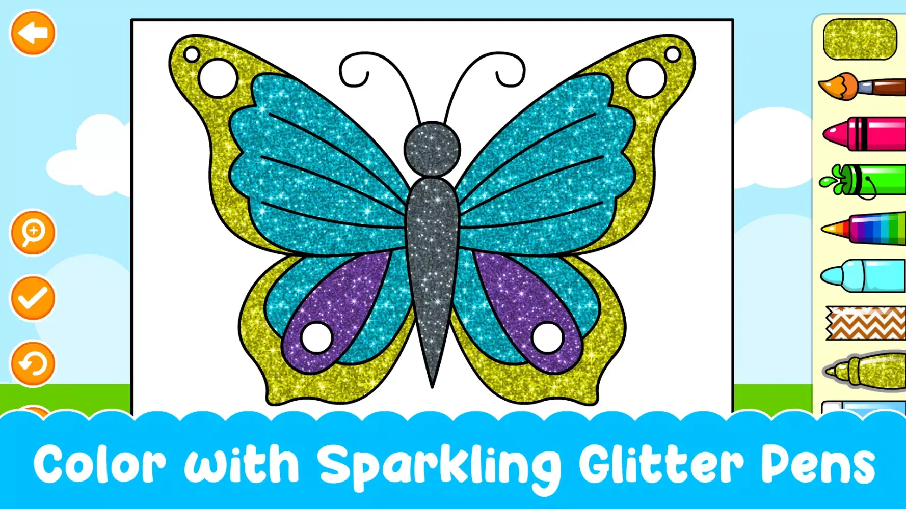 Unlike other coloring games, this app provides a wide range of coloring tools, including colorful glitter pens, neon glow pens, pattern tools, and a magic multicolor pen. The auto-fill coloring bucket makes it easier for toddlers to color, while the zoom feature ensures kids can color even the smallest details within the drawings.