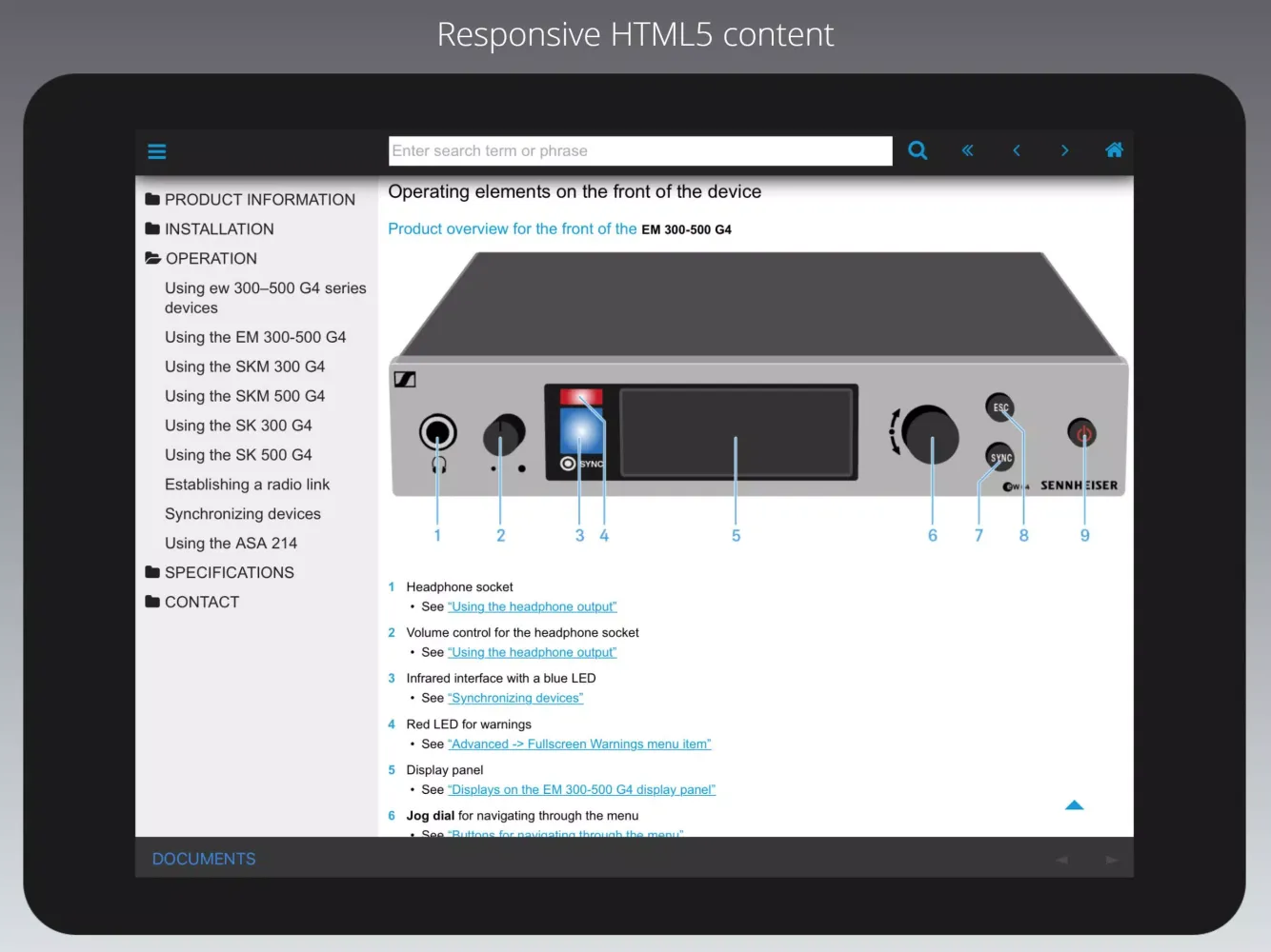The Sennheiser Documentation App is a powerful tool designed to provide users with seamless access to comprehensive product information and technical documentation for Sennheiser's professional audio equipment. This app is built with a responsive HTML5 design that ensures an intuitive and engaging experience across various devices, making it ideal for both on-the-go professionals and tech enthusiasts. Whether you're a sound engineer, audio technician, or simply someone looking to explore the capabilities of high-quality audio gear, this app has everything you need.