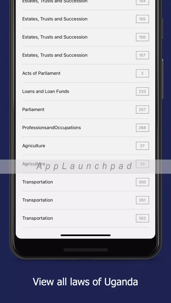 Overall, "Laws of Uganda" stands out as an indispensable tool for anyone looking to explore the country's legal framework. Its combination of ease-of-use, extensive content, and commitment to accuracy makes it a valuable asset for both professionals and laypersons alike. Whether you are conducting legal research, preparing for court cases, or simply curious about the laws governing your daily life, this app provides the resources you need in one convenient location.