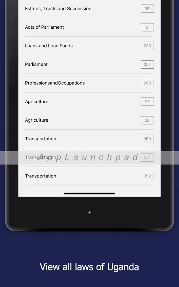 The application "Laws of Uganda" is designed to provide users with an intuitive and comprehensive digital platform to explore and access the legal framework of Uganda. This application aims to empower individuals, businesses, and organizations by offering easy access to the nation's laws and regulations in a user-friendly format. Whether you are a lawyer, researcher, student, or simply someone interested in understanding the legal landscape of Uganda, this app serves as a reliable resource.