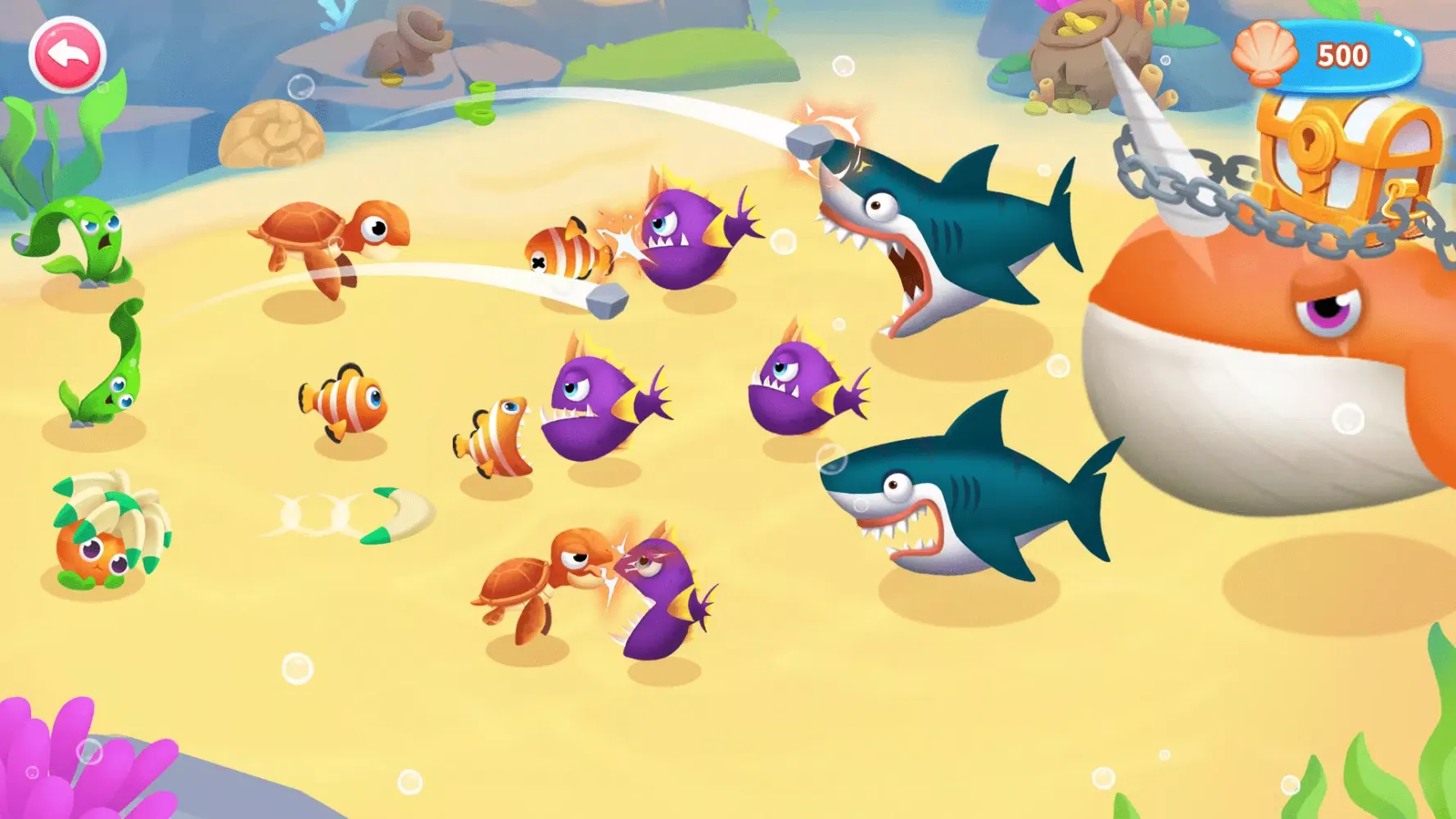Join the battle and prove that you have what it takes to lead your school of fish to victory. With each shell you collect and every fish you merge, you'll get one step closer to becoming the undisputed ruler of the underwater world!
