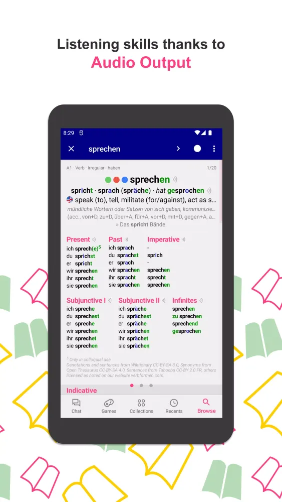 - Speech Output: Listen to the pronunciation of forms in normal or slow speed to improve your listening skills.
