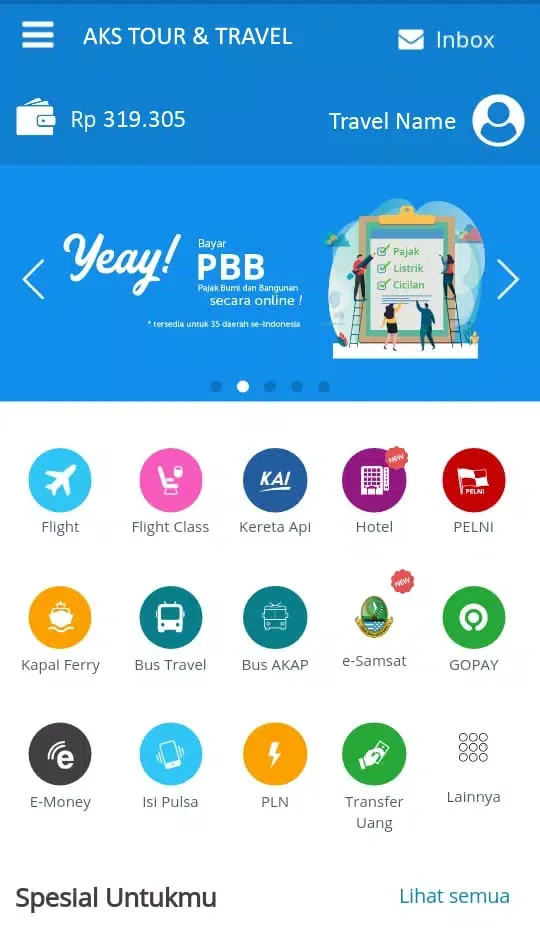 In addition to travel-related services, AKS TOUR & TRAVEL also supports essential utilities and financial transactions. You can easily pay bills for electricity (PLN), tokens, telecommunications services (TELKOM Group), gas (PGN), health insurance (BPJS), water utilities (PDAM), leasing, postpaid mobile plans, game vouchers, and cable TV subscriptions through our Payment Point Online Bank (PPOB) system. The platform also facilitates online money transfers to all banks in Indonesia and Malaysia, making it easier than ever to send funds across borders. Furthermore, we support top-ups for digital wallets like GOPAY (for customers and drivers) and GRABPAY, as well as e-money platforms such as BRIZZI, BNI TapCash, T-CASH, and OVO. For those managing larger expenses, we enable payments for installment plans related to KREDIVO, Home Credit, AEON, and car loans from OTO.