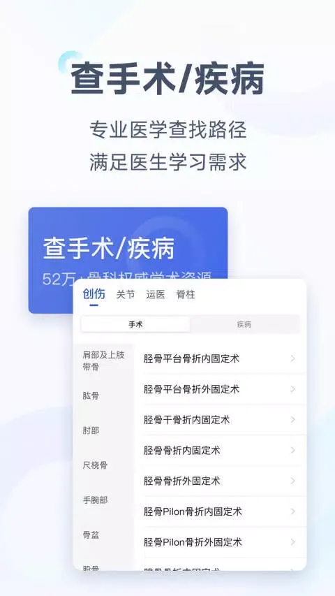 Educational Resources: Access a vast library of educational videos and documents that cover a wide range of orthopedic topics. The app features an orthopedic dictionary that can be easily referenced for quick learning and understanding.