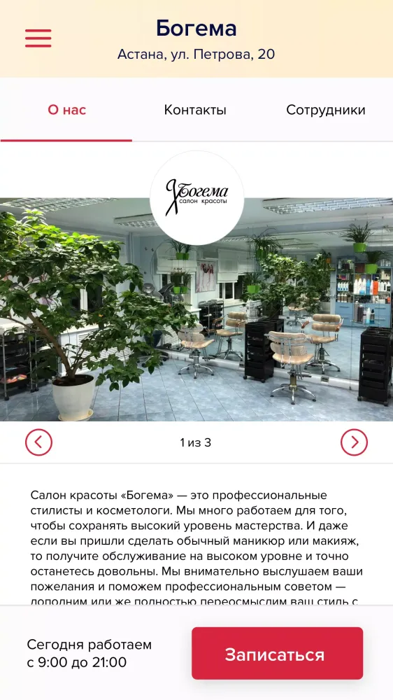 Application Description: Салон
