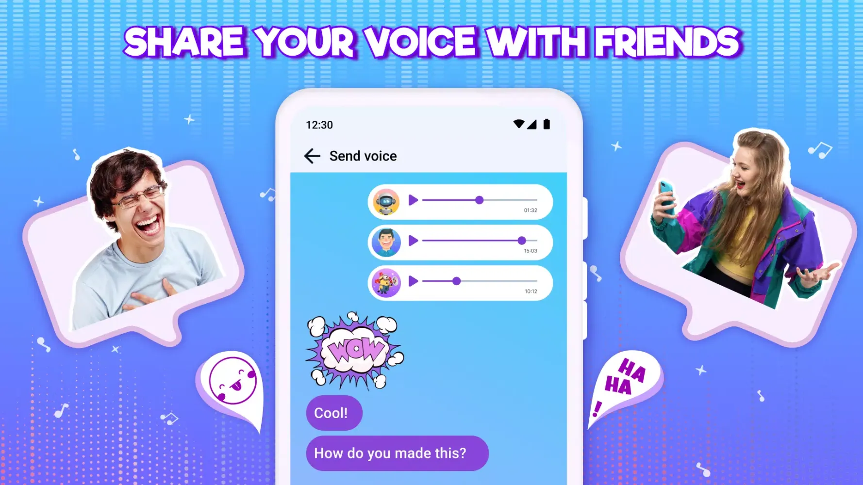 Share your hilarious and unique voice recordings with friends via social media, email, or messaging apps. Bring smiles and laughter to everyone!