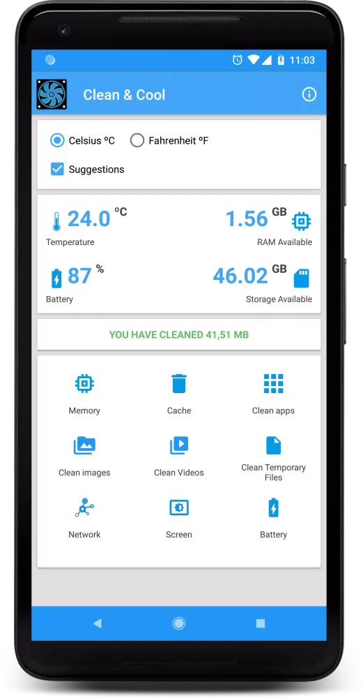 User-Friendly Interface: Clean & Cool boasts a sleek and intuitive interface that makes it easy for users of all tech skill levels to navigate through its features. With just a few taps, you can access various tools, monitor your device’s performance, and implement optimizations without any frustration.