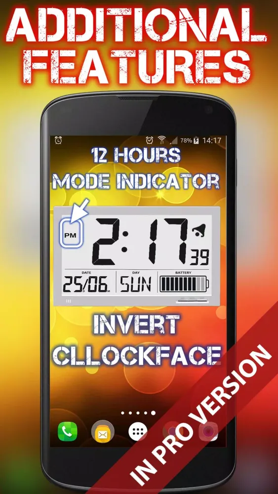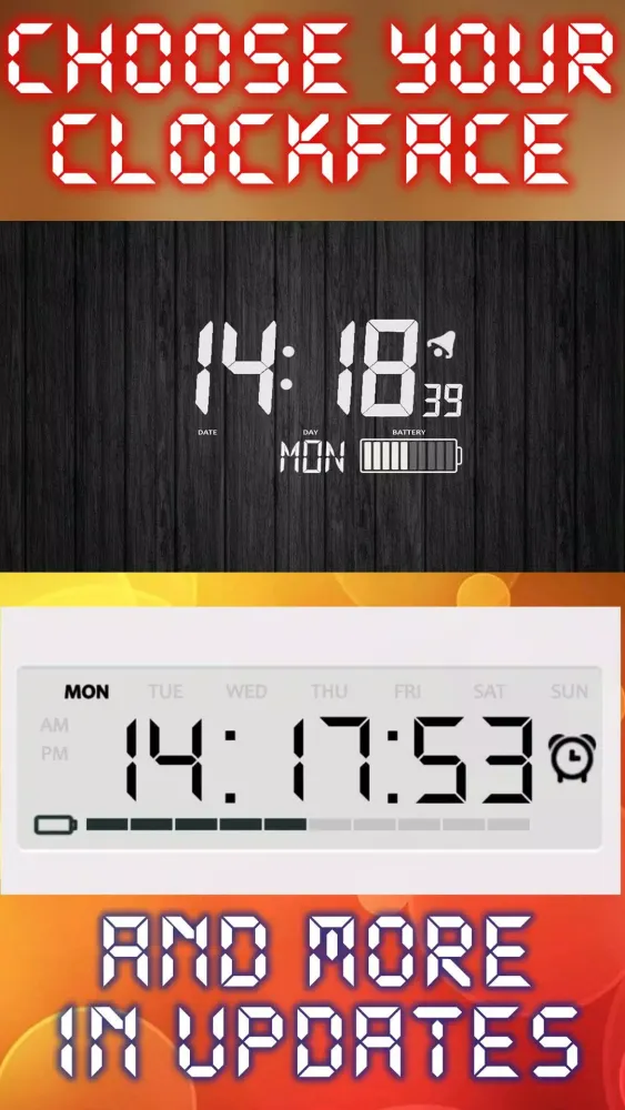 - Advanced Features: Access advanced options like invert clock face color, control digits color, display battery indicator, show day of the week, switch between 12-hour (AM/PM) and 24-hour formats, and toggle seconds modes.