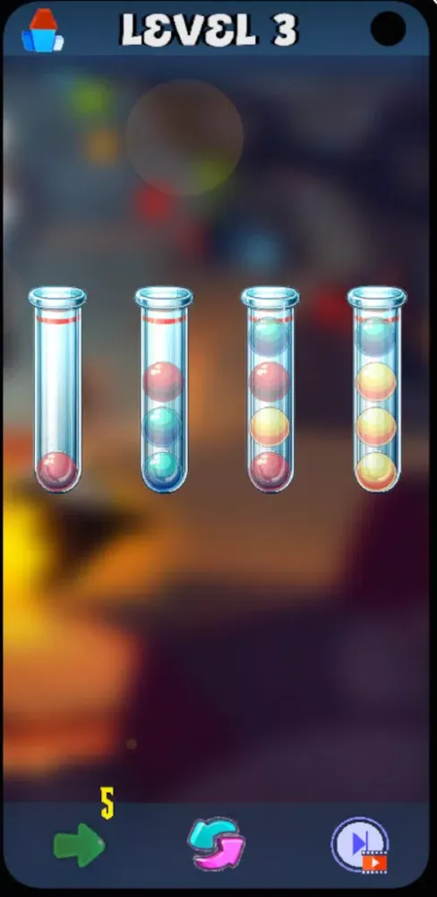 The journey begins with the easy level, perfect for those who want to take it slow and enjoy the soothing rhythm of sorting colors. Each level presents a set of differently colored balls scattered across various tubes. Your task is straightforward—arrange them so that each tube contains only one color. This mode is ideal for beginners or anyone seeking a calming activity to relieve stress after a long day. The vibrant visuals and smooth gameplay make it a relaxing escape into a world of color harmony.