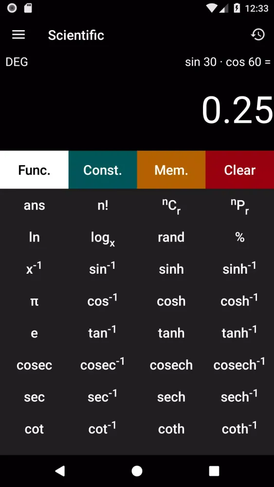 The Scientific Calculator stands out as an advanced tool with over 125 mathematical and scientific constants readily accessible. It supports implicit multiplication and operator precedence, allowing for swift input of complex expressions. With functions like trigonometric, hyperbolic, logarithmic, and exponential calculations, it caters to both academic and professional demands. Additionally, the unique memory mode enables statistical functionalities, making it indispensable for researchers and engineers alike.