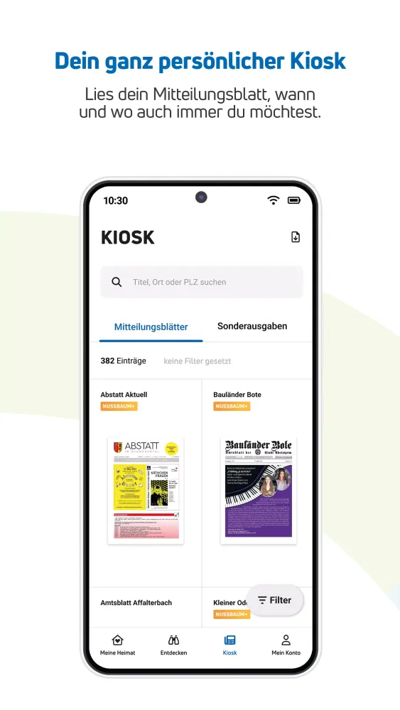 For those who love reading, NUSSBAUM offers a fantastic digital kiosk feature. Imagine having access to your favorite local newspapers and official gazettes anytime, anywhere. Whether you're at home relaxing, commuting to work, or enjoying a vacation, you can effortlessly flip through pages of your preferred publications. The app transforms your smartphone or tablet into a portable library, allowing you to stay informed and entertained no matter where you are.
