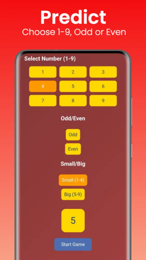 🔮 Multiple Options: Guess odd/even, small/big numbers, or a combination to increase your chances.