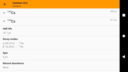 Our table contains a huge amount of information about each chemical element and presents atomic, thermodynamic, electromagnetic, nuclear properties, material properties and reactivity for each element. Besides, an animated diagram of electronic shells is displayed for each element. The application has a convenient search tool that helps you quickly find a particular element by symbol, name or atomic number.