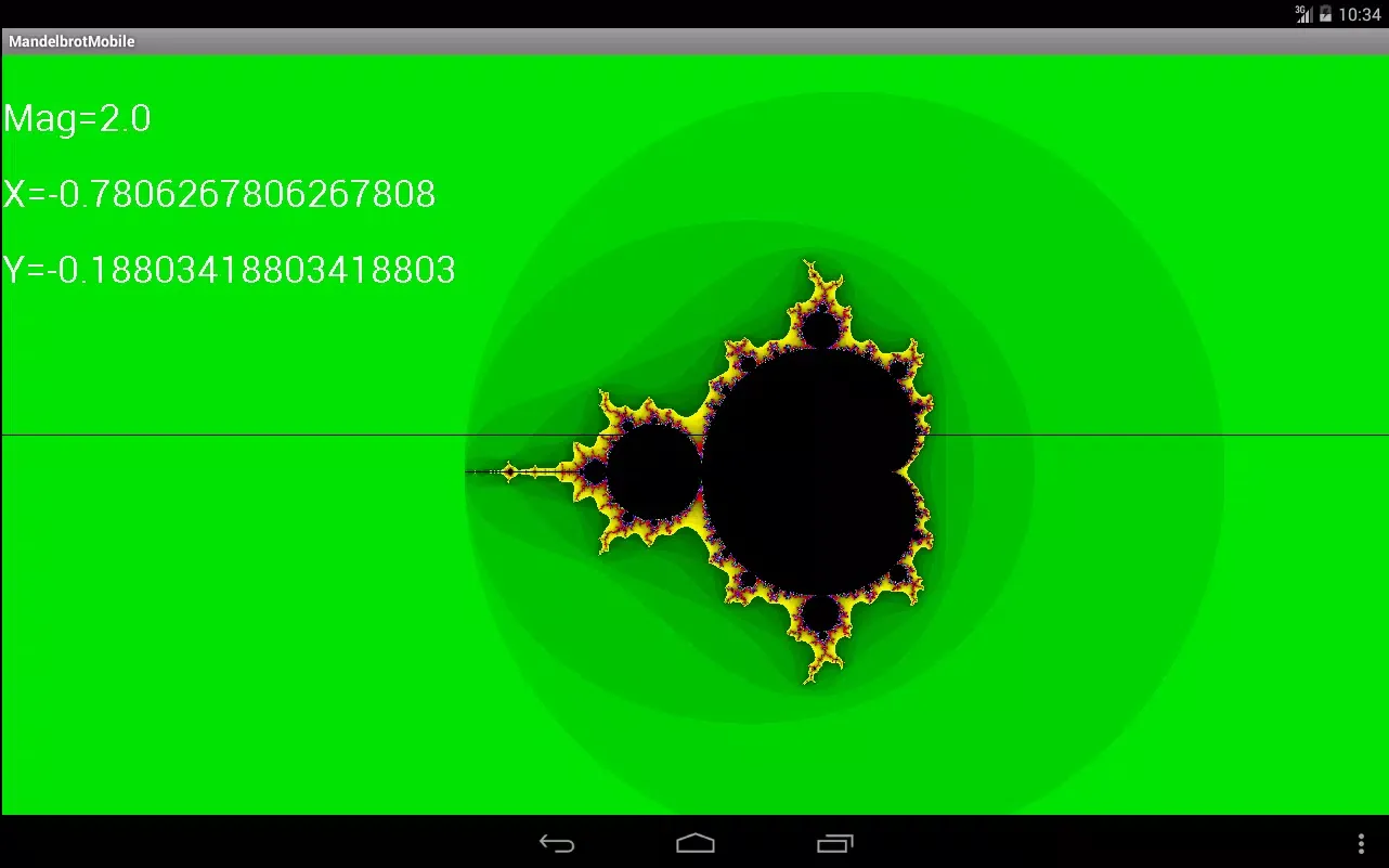 One of the standout features of this application is its intuitive "click-to-zoom" functionality. By simply tapping on the screen where you want to explore further, you can delve deeper into the fractal's details. Each level of zoom reveals new layers of complexity, showcasing the infinite depth and beauty of the Mandelbrot set. Whether you're a math enthusiast eager to understand the underlying principles or an artist seeking inspiration, this feature allows you to navigate through the fractal's endless patterns at your own pace.
