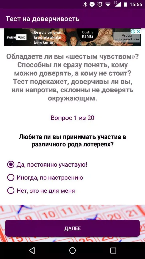 In summary, this app isn’t just about taking a quiz—it’s about empowering you to better understand yourself. If you’ve ever wondered whether you possess a “sixth sense” when it comes to trusting others, now’s your chance to find out. So, what are you waiting for? Dive into "Тест на доверчивость" and discover the hidden depths of your trust personality today!