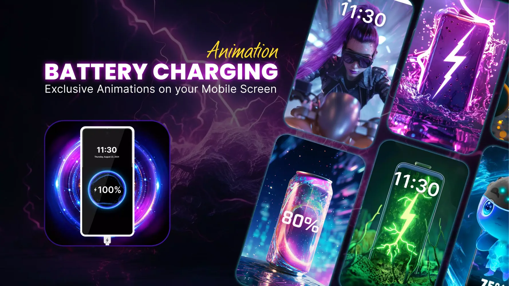 One of the standout features of the Battery Charging Animation App is its ability to display vivid and eye-catching animations every time you connect your charger. These animations are not only visually appealing but also highly customizable. You can choose from a variety of realistic and fun animations, ensuring that each charging session feels unique. The app supports a wide range of styles, including neon effects, 3D animations, hearts, circles, and more. These animations not only entertain but also provide a sense of satisfaction as you watch your battery fill up.