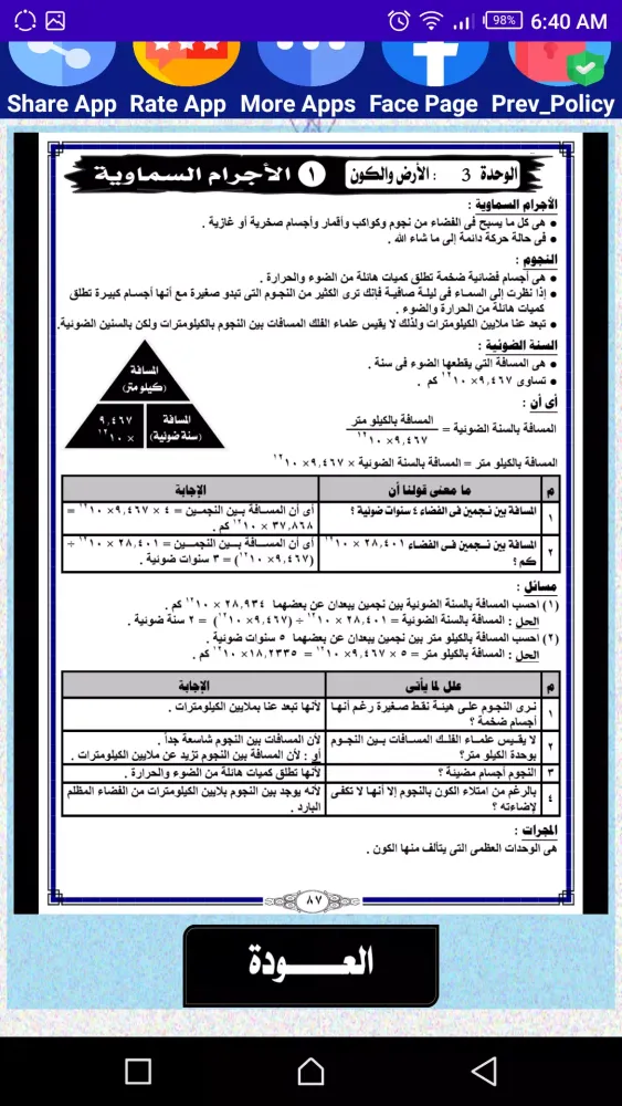 Overall, "هيا نتعلم علوم أولى إعدادي" is an invaluable resource for students studying science in the first year of middle school. With its comprehensive content, interactive exercises, and supplementary video explanations, this app aims to make learning science both effective and enjoyable.