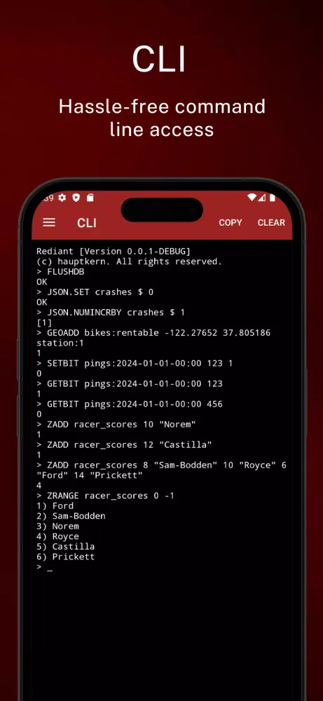 Advanced users will appreciate Rediant's built-in Command Line Interface (CLI). This powerful tool provides granular control over your databases, enabling you to execute complex commands and scripts. The CLI is perfect for automating tasks, performing batch operations, and conducting detailed analysis of your data.