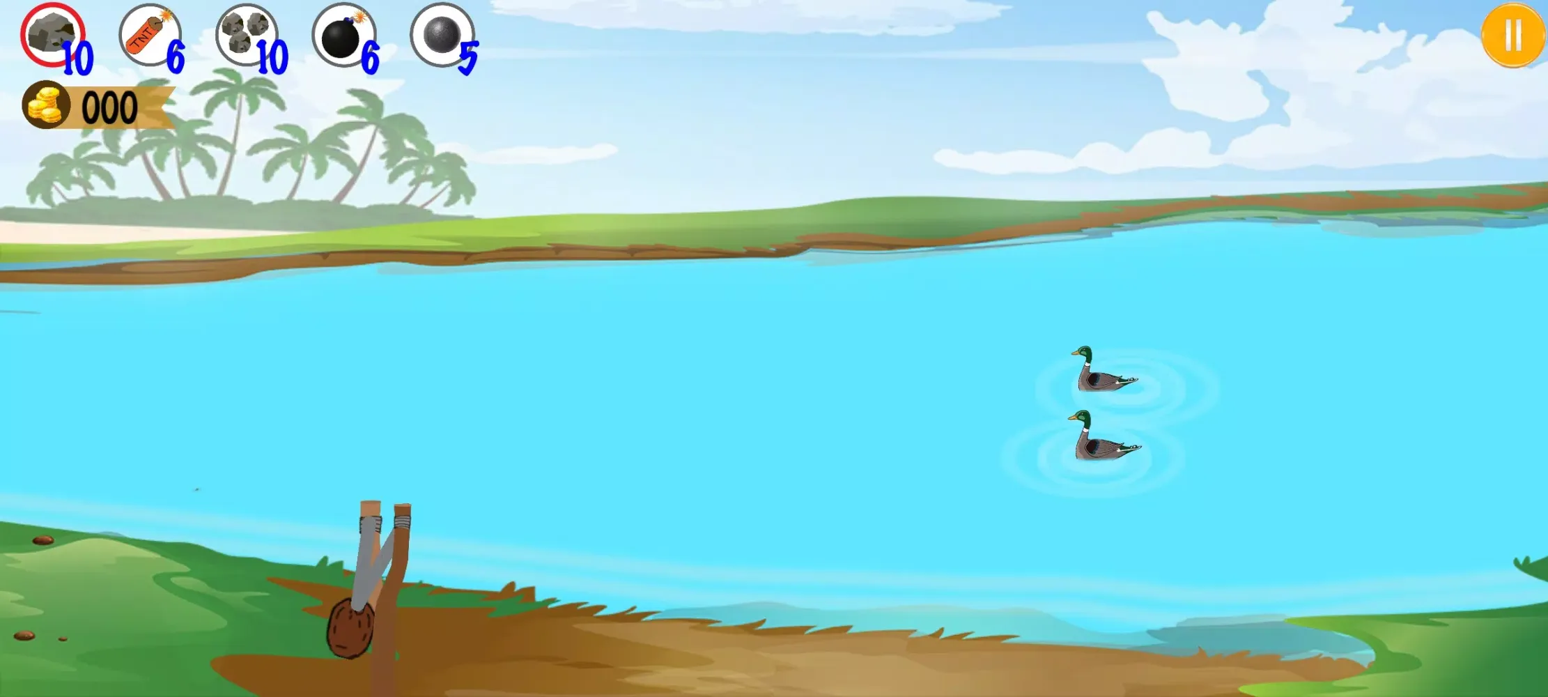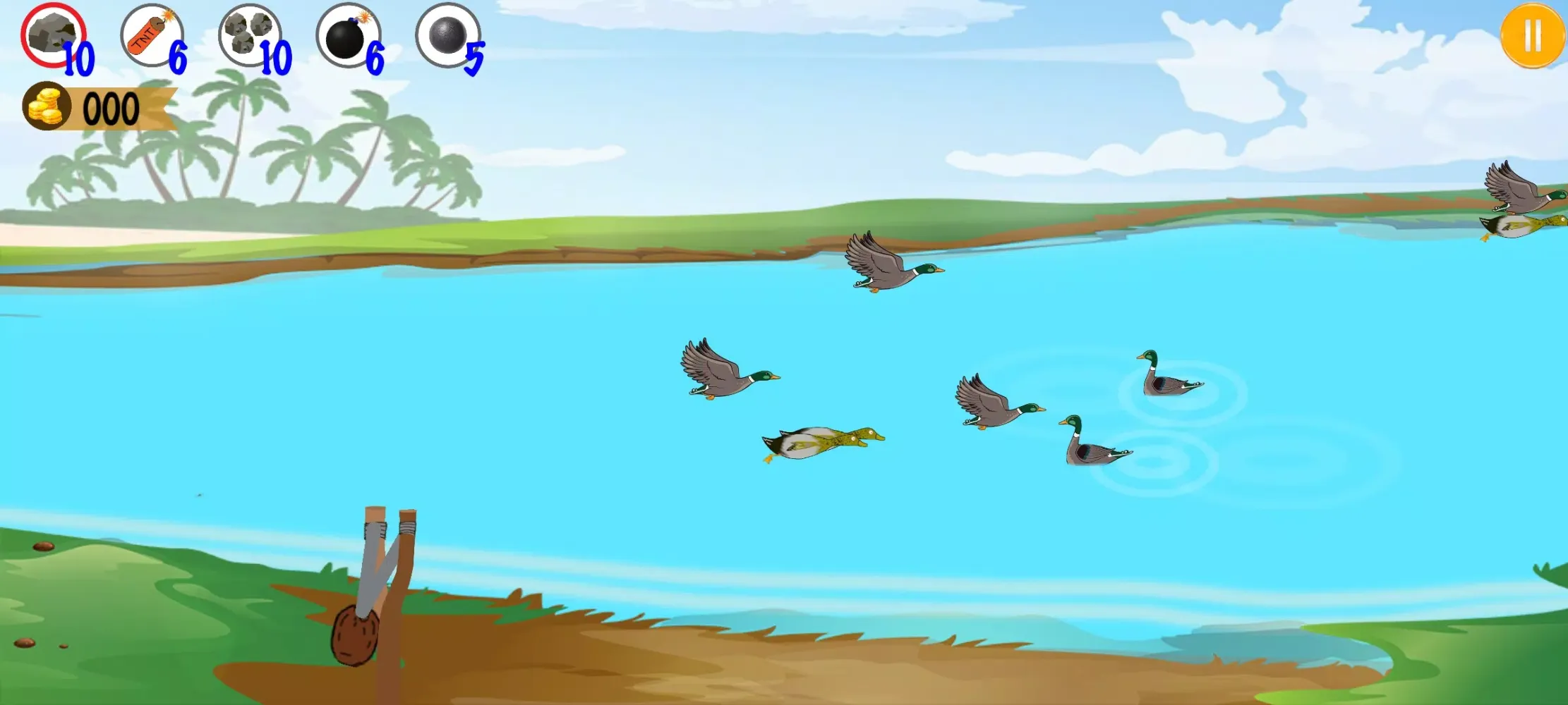 Sling Bird Hunter stands out among other games due to its realistic slingshot mechanics. The game features a variety of colorful and challenging targets, such as different types of birds (including ducks, vultures, pigeons, and sparrows). You can shoot stones, TNT, bombs, and other projectiles at these targets to earn coins. These coins can be used to purchase hunting equipment from the in-game shop, enhancing your gameplay experience.