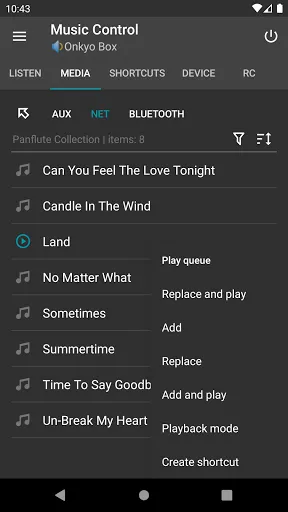 - One-click access to media items using shortcuts for Onkyo or Favourites for Denon
