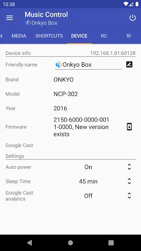 - Display device details and control device settings such as dimmer level, digital filter, auto power, and sleep timer