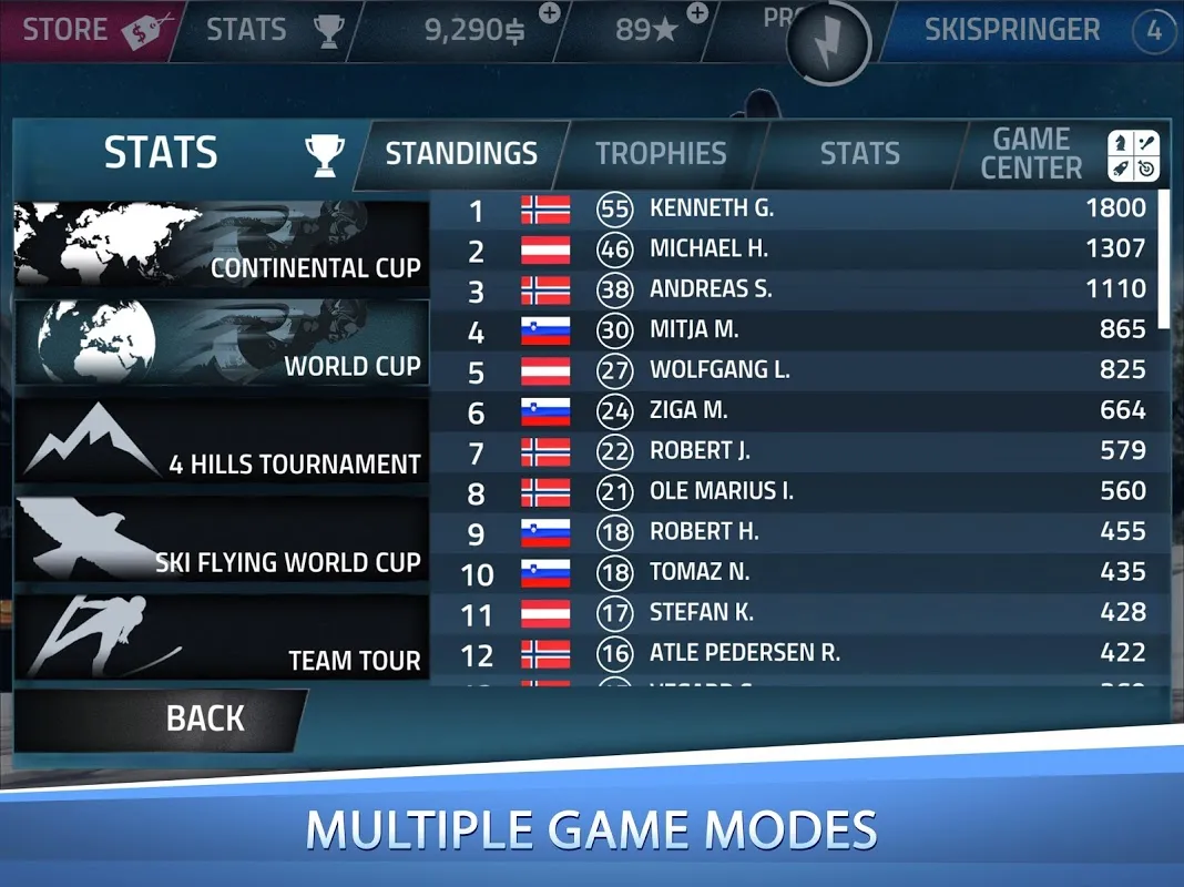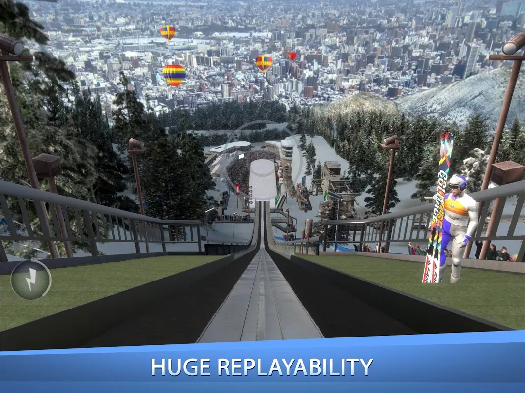 Unlock new levels, contests and venues and become better with increasing skills of your ski jumper.
