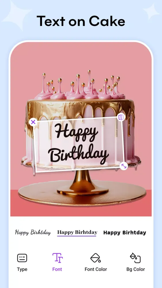 For those who love a touch of elegance, the Cake Photo Editor lets you experiment with 200+ fonts and colors, ensuring that every detail reflects your personal style. Advanced tools like cropping, filtering, and background replacement allow you to fine-tune your images until they’re picture-perfect. Whether you're creating a birthday collage or designing a heartfelt greeting card, Cake Frame gives you everything you need to craft something truly special.