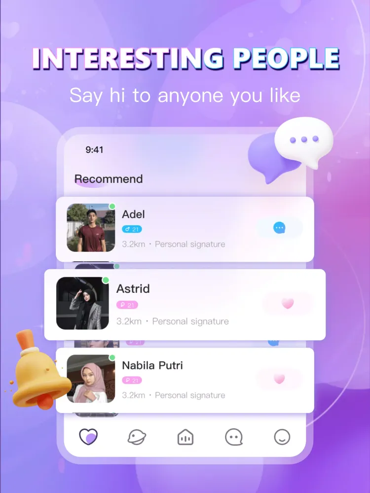 HATI is more than just a chat app; it’s a place where you can immerse yourself in vibrant 24/7 conversations with local singles and beyond. Say goodbye to boredom with our diverse chat room options. From casual hangouts to themed parties, there’s always something exciting happening. Simply tap into a chat room to dive into lively discussions and meet interesting people from all over the world.