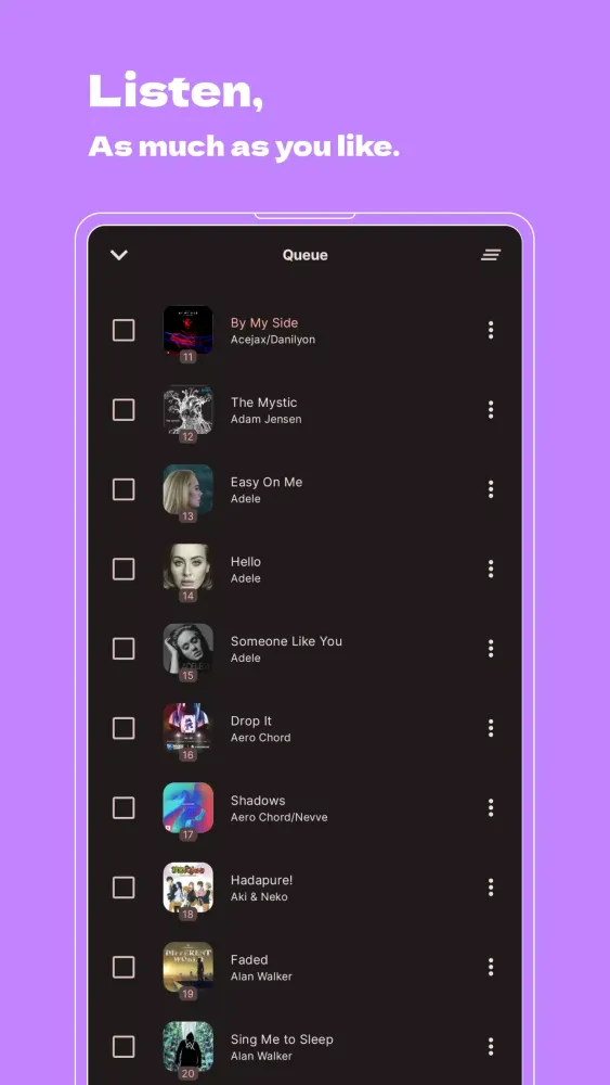 Symphony boasts an extensive list of features that cater to both casual listeners and music enthusiasts alike. With a robust music queue system, you can easily organize and manage your tracks in a seamless manner. The application allows you to browse through your collection by songs, artists, album artists, albums, and genres, making it effortless to discover new music or revisit old favorites.