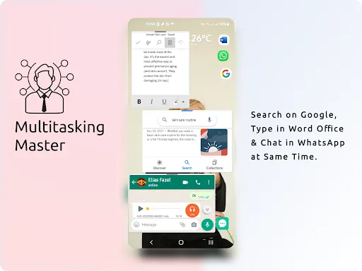 Also, Float It help you to search on Google, type in Word Office and chat in WhatsApp at same time.