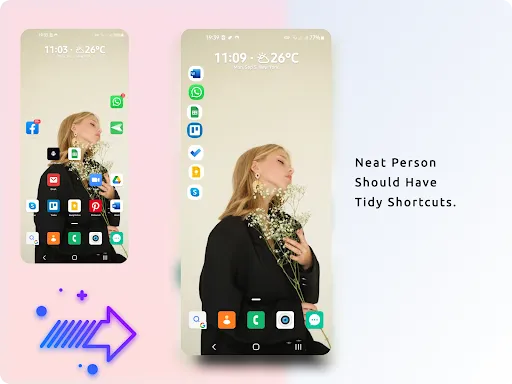 Shortcuts are created for this purpose, but they are not enough to rescue the times. You only see them on the home page. They make the screen crowded and unorganized. Also, you still have to make several actions to switch among apps.