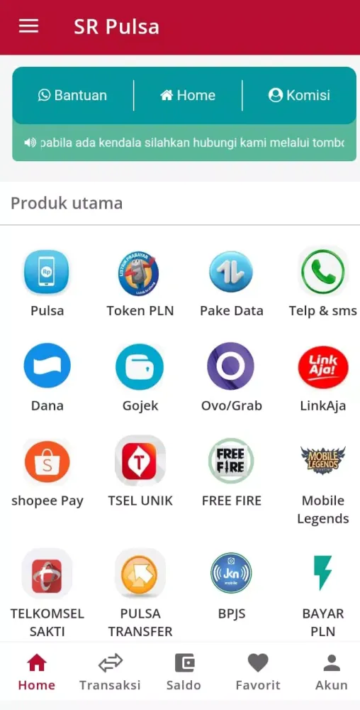 SR Pulsa is a comprehensive digital platform designed to provide users with a seamless experience for all their credit-related and payment needs. Whether you're looking to manage your mobile phone credits, purchase internet data packages, or handle utility payments, SR Pulsa offers a one-stop solution that ensures convenience and efficiency. The application supports regular credit top-ups, data quota purchases, PLN electricity tokens, postpaid PLN bill payments, BPJS contributions, and even online game vouchers. Additionally, it facilitates reloads for online motorcycle taxis, making it a versatile tool for handling various daily requirements.